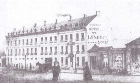 Cet immeuble imposant, ici grossièrement lithographié par Jehan Merchant, est longtemps entouré par des maisons basses et par des dépôts de messagerie. Ce qui permettait de voir de loin son nom d’origine sur une face : « Le Grand Hôtel de Londres ». Bâtiment et enseigne inchangés depuis plus de 180 ans, c’est le plus vieil hôtel de la ville encore en activité. Seule la porte d’entrée a été refaite dans le goût 1900 avec l’ajout d’un jardin d’hiver en structure Eiffel (actuelle salle de réception de l’hôtel).
