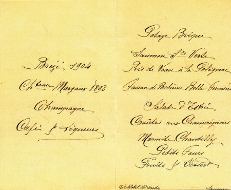 Ce menu du 13 février 1914 témoigne de l’opulence et de la gourmandise de cette époque.